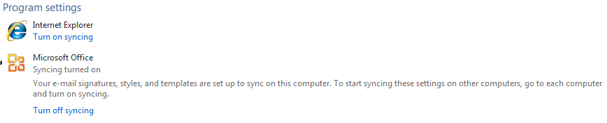 Then turn on synchronization for your IE favorites and/or Office; Office synchronization will allow you to keep your signature, templates or style between different computers.