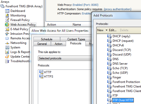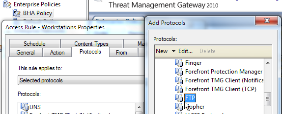 I was surprised as I configured my TMG EMS to allow FTP protocol.