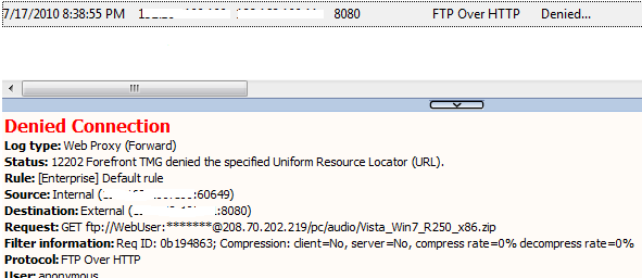 Honestly, I found this an inexcusable mistake as many customer wants to manage Internet access at the Enterprise level (especially for protocol like FTP or, in this case, FTP over HTTP).
