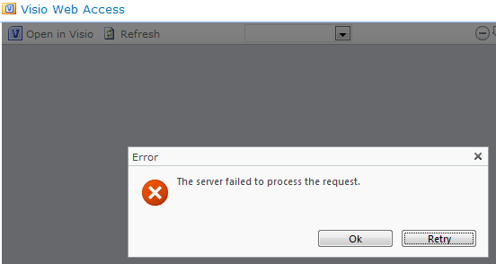 Failed to get Vector Diagram for visio file page Exception : The server was unable to process the request due to an internal error. For more information about the error, either turn on IncludeExceptionDetailInFaults (either from ServiceBehaviorAttribute or from the <serviceDebug> configuration behavior) on the server in order to send the exception information back to the client, or turn on tracing as per the Microsoft .NET Framework 3.0 SDK documentation and inspect the server trace logs.