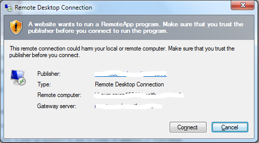 A security window may also appear before connecting to ask users to confirm they trust the publisher.