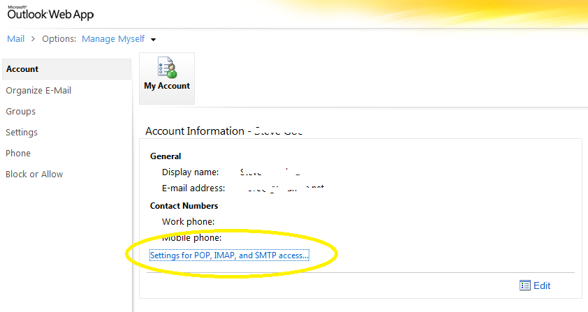 With Exchange 2010, users are able to get POP and IMAP settings from OWA.