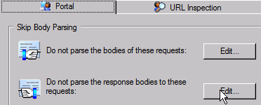 Go to the Portal tab and click on the Edit button for ‘Do not parse the response bodies to these requests’