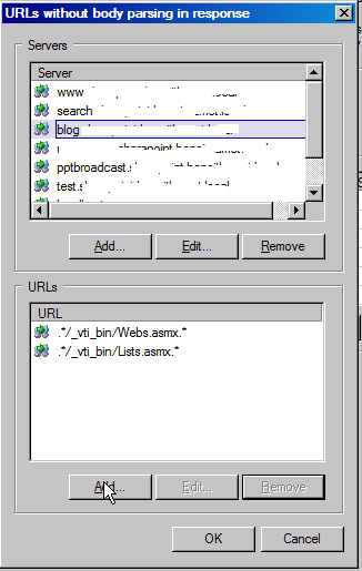 On the top list, locate your SharePoint blog application and then click the Add button for the URL’s list
