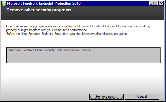 If you have already installed the older version, ForeFront Client Security, the setup program detects it and propose to uninstall it.