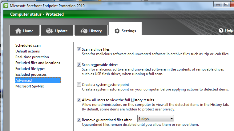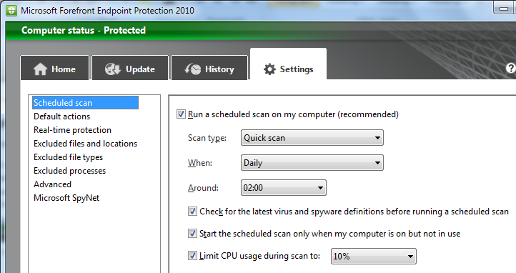 ForeFront Endpoint Protection 2010 is now easier to install manually and provide some additional settings to manage performance and quarantine.