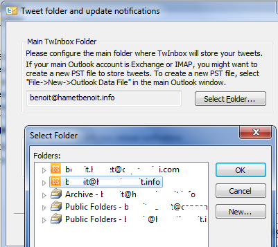 If you have multiple mail account, you can choose on which the tweets will be saved