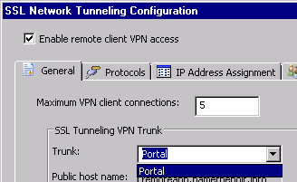 1.3 Select the portal trunk which will host the VPN access – you can’t select an HTTP trunk, and define the number of maximum VPN client allowed