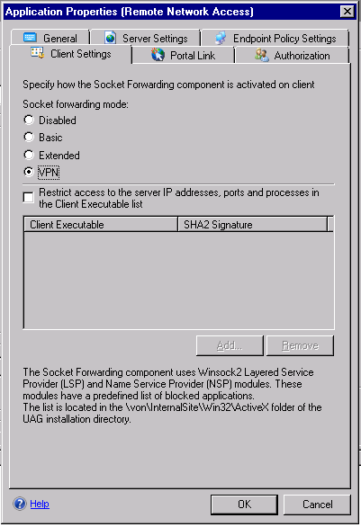 - Basic: none of the applications that load the LSP or NSP modules are enabled access to configured corporate resources, unless the Forefront UAG SSL Application Tunneling component is running, and at least one tunnel is open