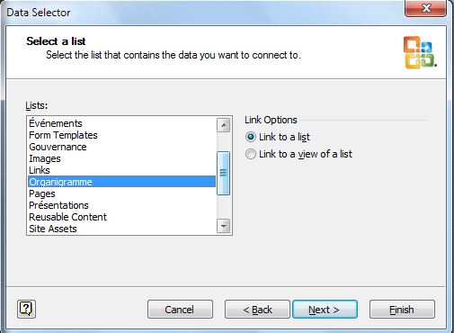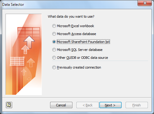 Choose Microsoft SharePoint Foundation list and follow the wizard