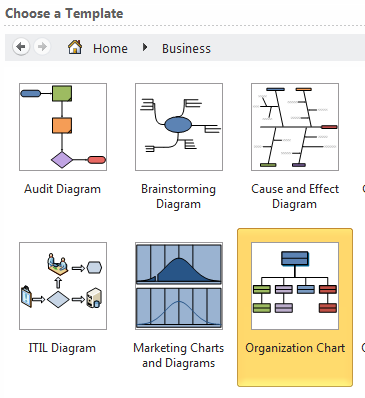Launch Visio 2010 and choose to create an organizational chart (Business\Organization Chart)