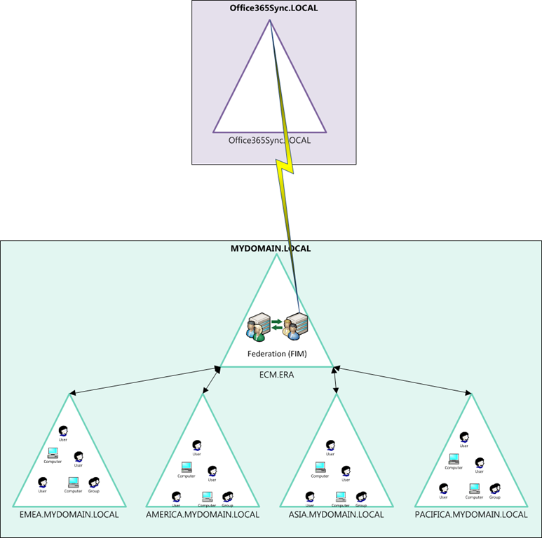This AD Forest (let’s call it Office365Sync) will be a technical one which will be synchronized with your existing directories (where your user are located) thanks to FIM. Then Office365Sync forest will host the Directory Synchronization tool used for Office 365 synchronization.