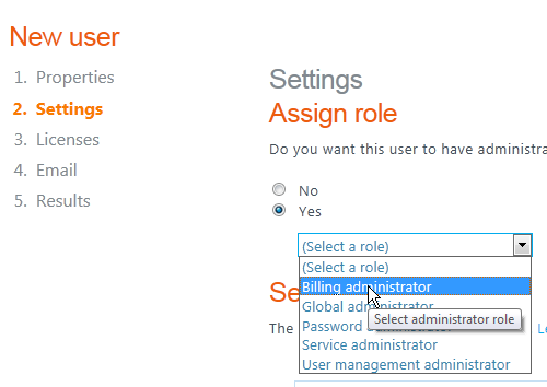 You are also able to assign administrative right when creating a new Office 365 user from the portal