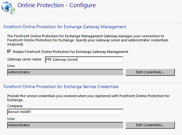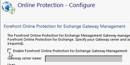 Enable the option Enable ForeFront Online Protection for Exchange Gateway Management