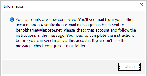 Once the system has added your email, you receive a confirmation and it starts downloading message from the mailbox