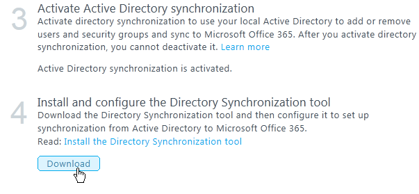 Then download DirSync tool by hitting the Download button; it is really important to use this tool and not the one which may be available from others Microsoft Downloads sites.