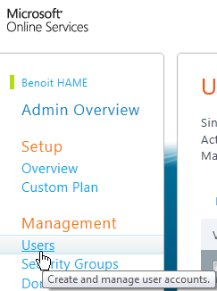 Connect to the administration portal (https://portal.microsoftonline.com) and go to Management\Users