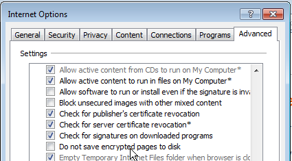 If the download failed, go to the browser settings and disable the option Do not save encrypted page to disk