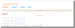 Synchronized user properties are not modifiable from the Office 365 administration portal