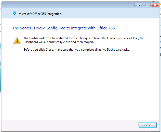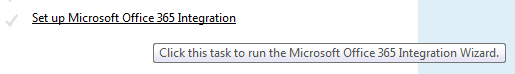 Once the update has been installed you will see a change on your SBE Dashboard; the link “Set up Microsoft Office 365 Integration” has changed. You can now configured the Office 365 integration.