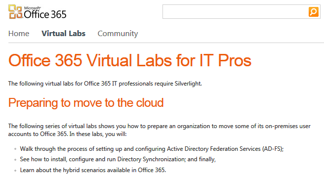 This will help you to find the right TECHNICAL information about Office 365 and some virtual labs to help you preparing your move to the cloud world