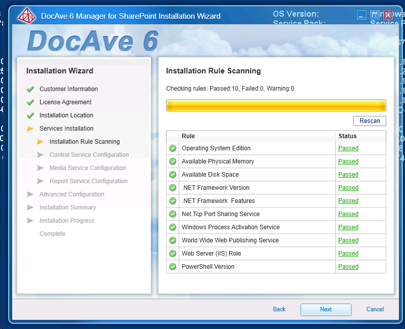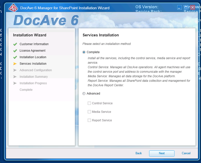 - Completed: will install all DocAve service on the server