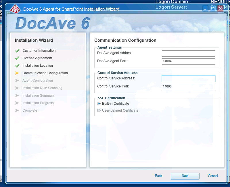 There is nothing specific to do here except you have to define the communication settings with Control service; don’t forget you may have to define exception on firewalls to allow communication between the agent and the Control service.