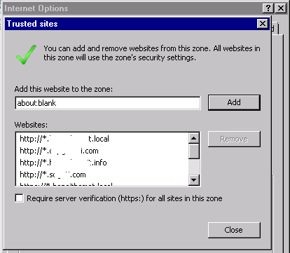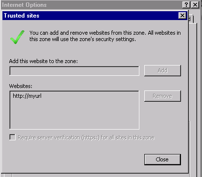 By hitting the Modify Settings button you can assign the URL to the Security Zone you want to use as well as the security configuration (user authentication, Active X…).