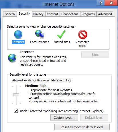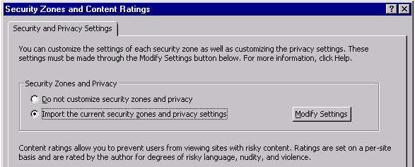 Open the Security Zone and Content Ratings and choose Import the current security zones and privacy settings