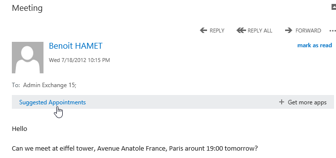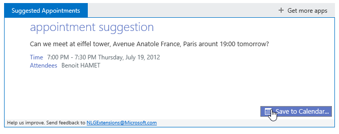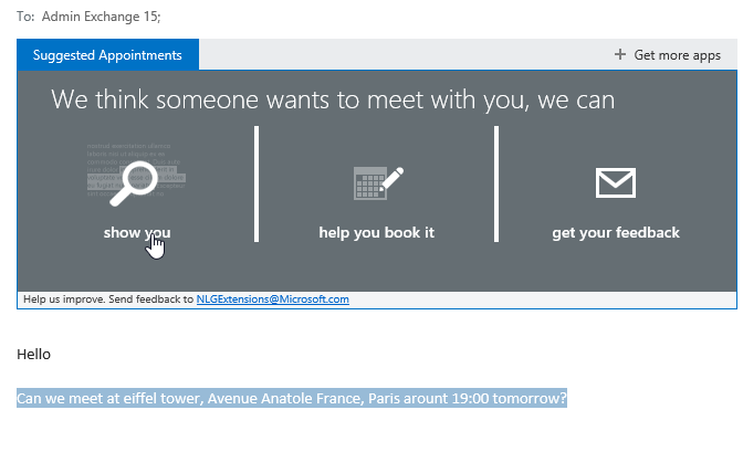 The idea is to provide to the users additional features to assist them in their day to day work, such as find direction to go somewhere, create appointment on their calendar…based on information received through email.