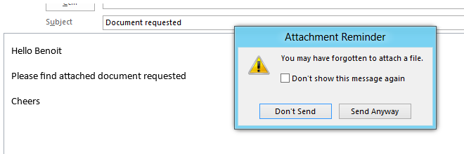 This is pretty helpful, how many time do you forget the attachment? Now, with Exchange 2013, you will never forget anymore an attachment.