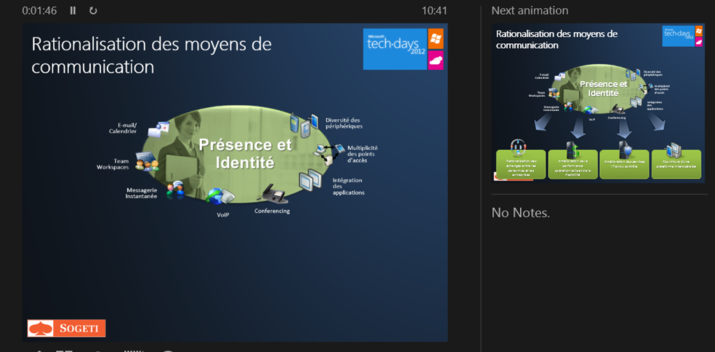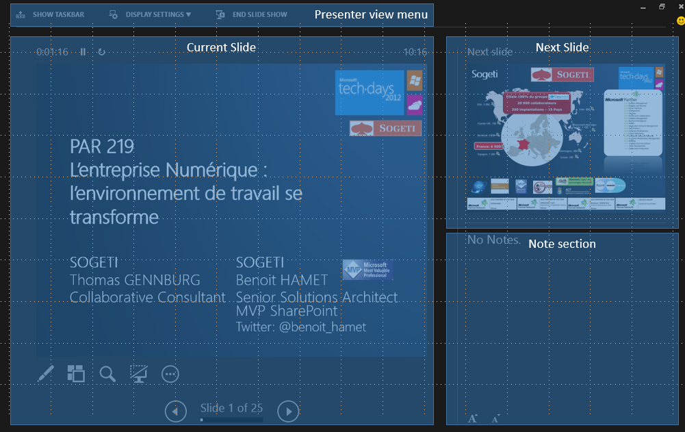 As with previous PowerPoint version, notes section is showing notes already included on the presentation but now you can write note while presenting.