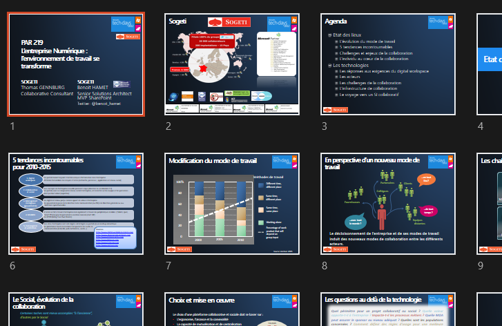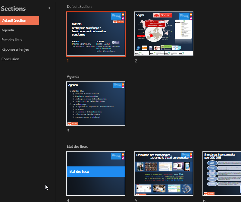 If you use section on PowerPoint to segment and organize your slides, the slides are shown using these sections. If not, the slide sorter is used.