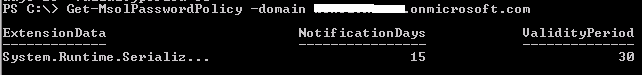 get-msolpasswordpolicy -domain <your Office 365 tenant>