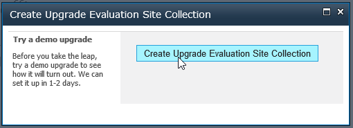 If you hit Try a demo upgrade, you will be asked for creating a site collection test upgrade