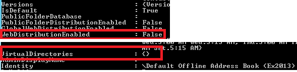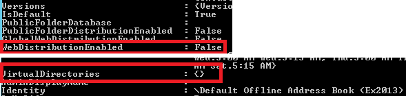 Get-offlineaddressbook | fl WebDistributionEnabled,VirtualDirectories,Identity