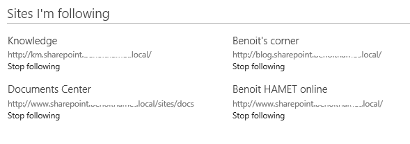 - You should see all sites you are following