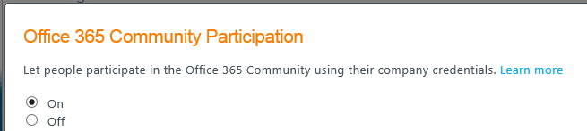 Microsoft has recently deployed a small update for the Office 365 Administration portal to allow customers to manage if their users can connect to Office 365 Community forum for posting question.