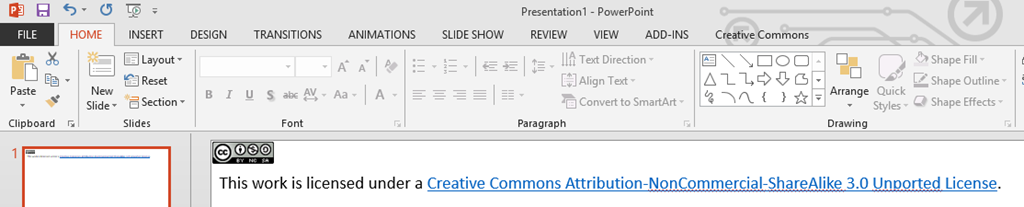 Once installed, a new tab Creative Common is added
