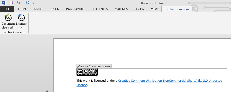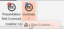- Once you have created at least one license, start Excel, PowerPoint or Word and hit the Creative Common tab