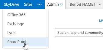 To enable RMS for SharePoint, connect to the SharePoint Online Administration site (From the Office 365 administration portal, open the submenu just below Admin on the right side of your name and select SharePoint)