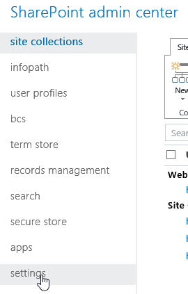 Then, from the SharePoint Online administration portal, reach the Settings section from the left menu and enable RMS for SharePoint