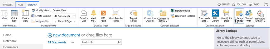 Open the library settings using the ribbon