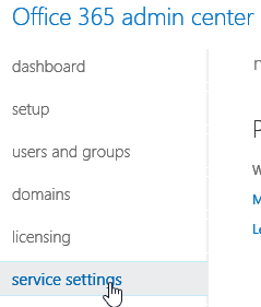 To enable AADRM, connect with an Office 365 administrator account to the administration portal and go to Service Settings section (on the left)