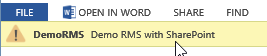 If this settings is NOT enabled, the Office document will be opened with the web browser. End user will see a yellow information bar explaining the document is protected by RMS (the RMS policy name is shown).