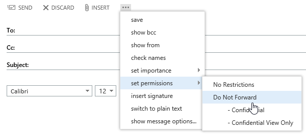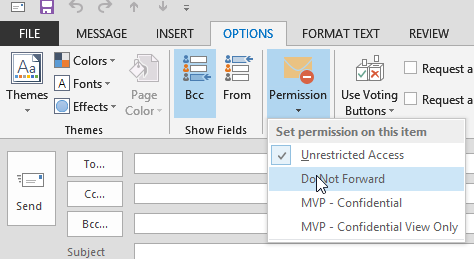 Create a new email and go to Set Permission