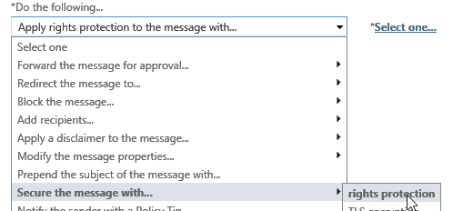 To secure your emails with RMS, you must set a Mail flow rule (recommended). Doing so, your end-user will don’t have to think about RMS.
