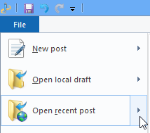 - Open the File\Open recent post menu and choose the post you just wrote