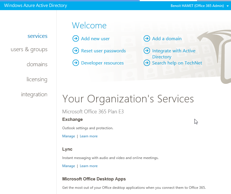 WAAD is used with Office 365 to manage Office 365 users – cloud user or synchronized with your internal directory – as well as to provide a single point of identity management with all your applications.
