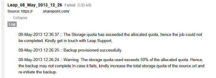 In order to make the backup successful, you must have at least 50% storage available for your SharePoint site collection; if not, just increase the storage quota from the SharePoint Online Administration Center.